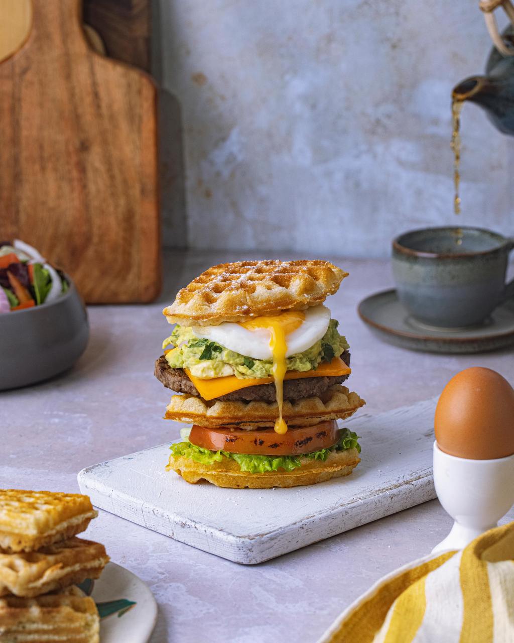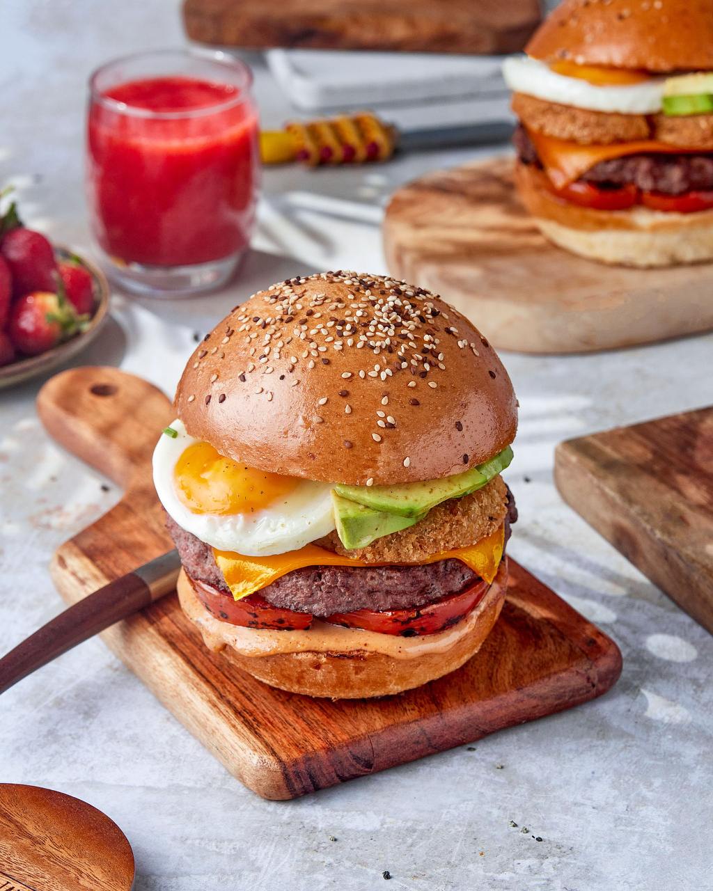 All-day Breakfast ! Mix of Organic Greens topped with Fresh Diced Avocado, Diced Cucumber, Fresh Strawberry Halves, Shredded Cheese Blend, Roasted Cherry Tomatoes & Free Range Sliced Hard Boiled Egg served with Garlic Oil Toasted Baguette and Stone Ground Mustard Vinaigrette