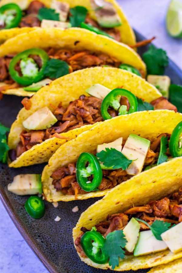 Herb Roasted Organic Oyster Mushroom stuffed on 3 Crisp Corn Tortilla, topped with Organic Shredded Lettuce, Freshly made Black Bean & Corn Salsa, Pico de Gallo, Pickled Jalapeno & Chopped leek served with House-made Guacamole & Salsa Roja with Lime Wedge on the side – 100% VEGAN & GLUTEN FREE
