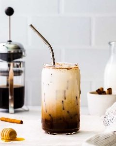 0 out of 5Choose between Cold Brew base or Freshly Brewed Double Shot Coffee base. It is then mixed with Locally Sourced Organic Honey & Cinnamon Powder and topped with Cold Pasturized Frothed…